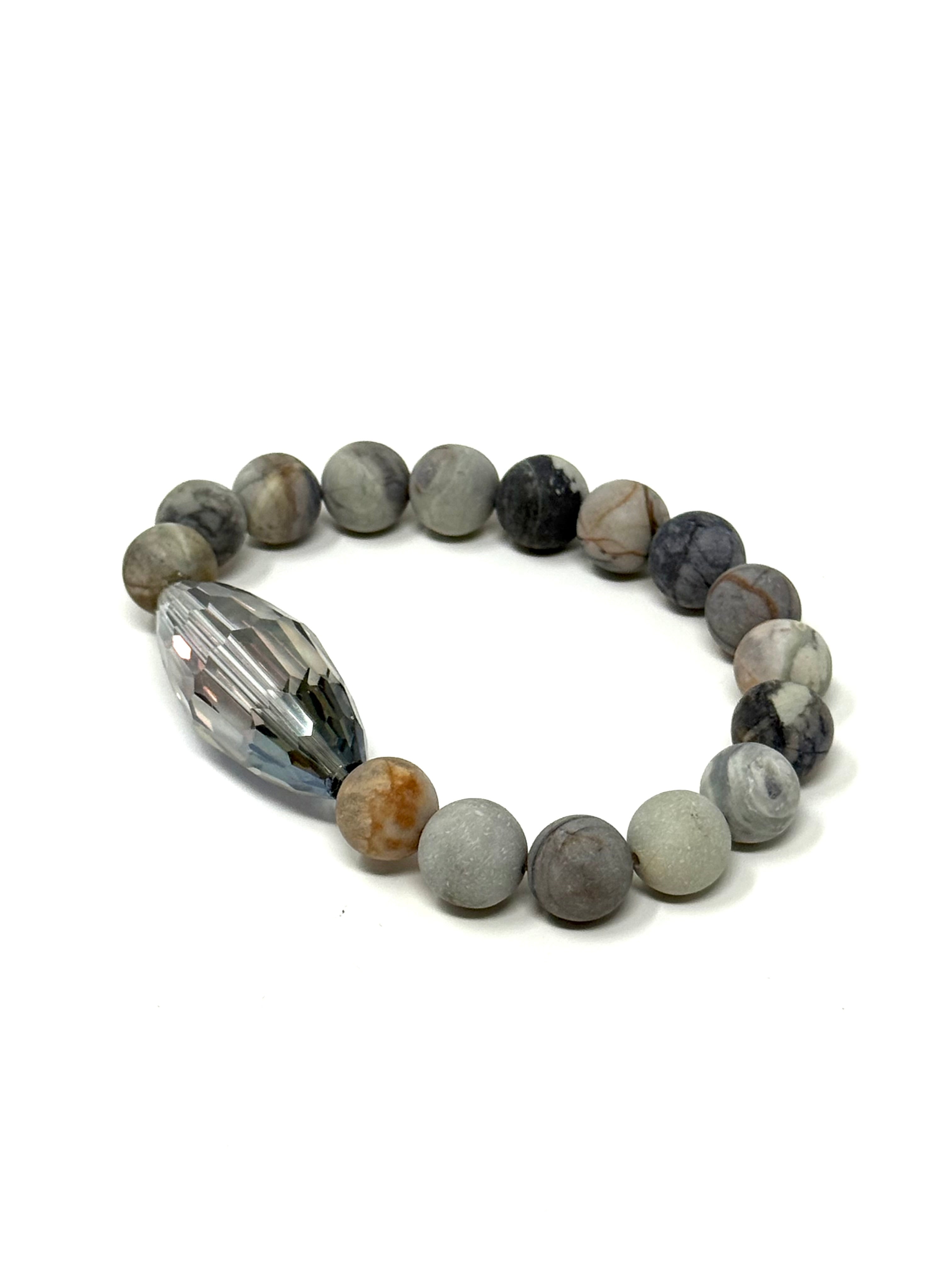 Matte jasper beads accented with a crystal tube for a touch of luminous elegance