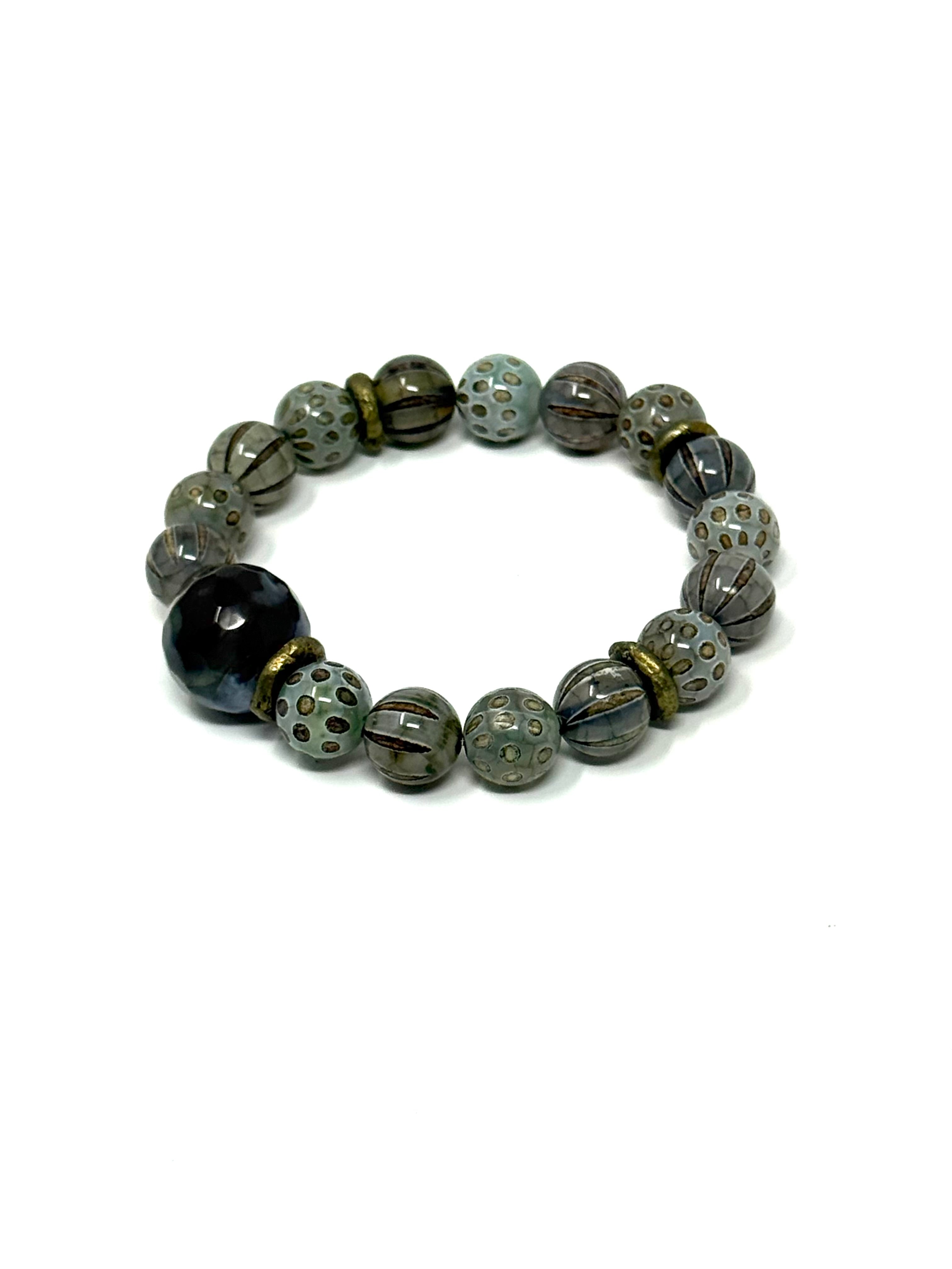 Tibetan agate beads with bronze and agate accent unite rugged beauty with timeless elegance